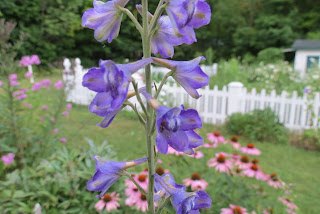 What could be more spectacular than Tall Larkspur, Delphinium exaltatum against a backdrop of Purple Coneflower? Although it is somewhat rare to find in nature, this was easy to grow from seed and "plays" well with the other plants in my backyard.